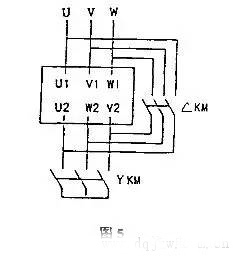 當AKM的主觸點閉合時,如圖4所示,u相繞組U1和U2的頭端和尾端連接到u相電源,V和w相繞組的頭端和尾端分別連接到V和w相電源,因此三相繞組沒有電流,因此Y正常啟動,并且△ 停止跑步。